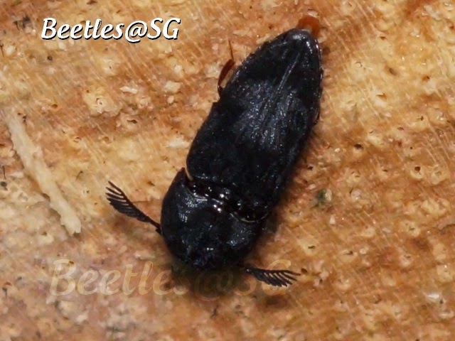 The next beetle was a Leaf Beetle (Lema cyanella) which was found in a patch of tall grass. In fact there were several of this beetle in the same location. It is my hope that the National Parks Board (NParks) would leave the spot alone and not send in their grass-cutters to give the place a manicured look.